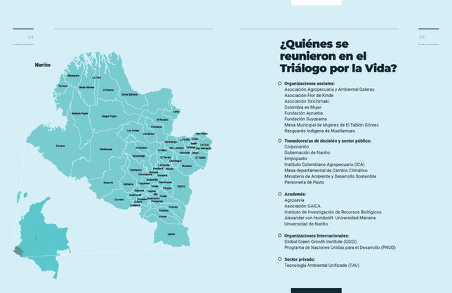 Sumados el departamento de Nariño y la región amazónica representan un poco menos del 50% de la extensión territorial continental colombiana. Aspiramos a que los consensos a los que se llegó en los Triálogos por la Vida así como otros paralelos que puedan enriquecer estos últimos, puedan impactar la planeación territorial de casi la mitad del país para gestionar nuestra biodiversidad y el cambio climático.